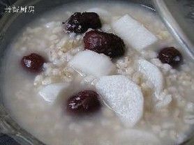 主料:薏米100克,稻米100克,山藥200克,輔料:棗(干)15克,調料:冰糖20克,蜂蜜15克