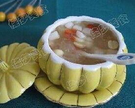 2、鍋內加水1500克,放入山藥丁、銀耳、蓮子、冰糖、枸杞開鍋后慢火煮沸半小時即可。