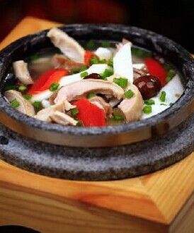 4、原湯加入豬肚、栗子、山藥片、紅椒、加鹽、胡椒調(diào)味略煮即可出鍋
