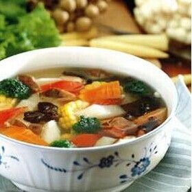 白山藥鮮蔬湯做法介紹 根據中國傳統食療說法,五色入五臟。這道素湯中用到了:青(青花菜)、赤(胡蘿卜)、黃(玉米)、白(山藥)和黑(黑木耳),稱得上五色俱全,可以全方位地增進健康。