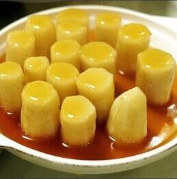 3.將煨山藥的糖汁過細(xì)羅,注入另一鍋中,加入桂花醬,將汁熬濃,澆在山藥上即成。